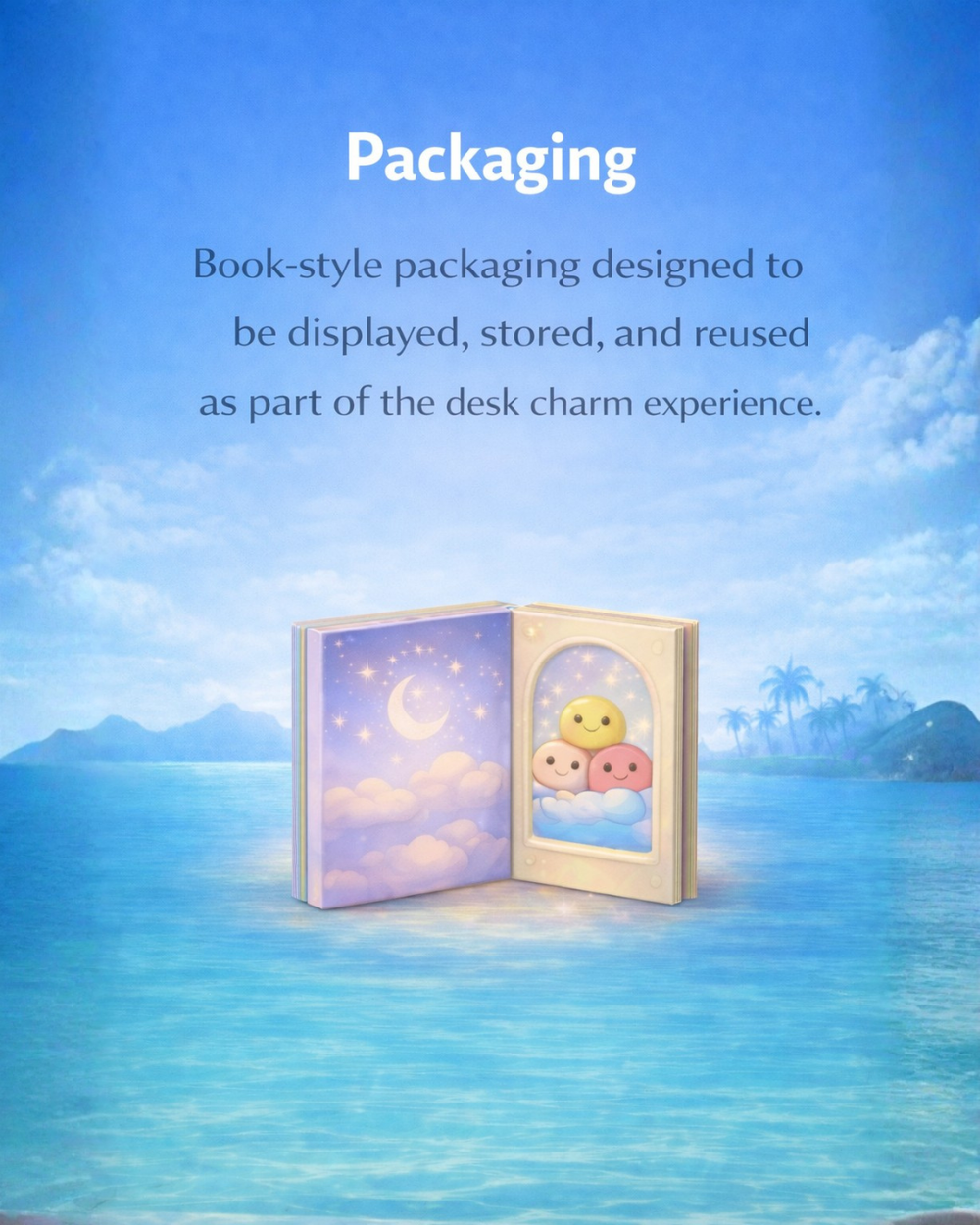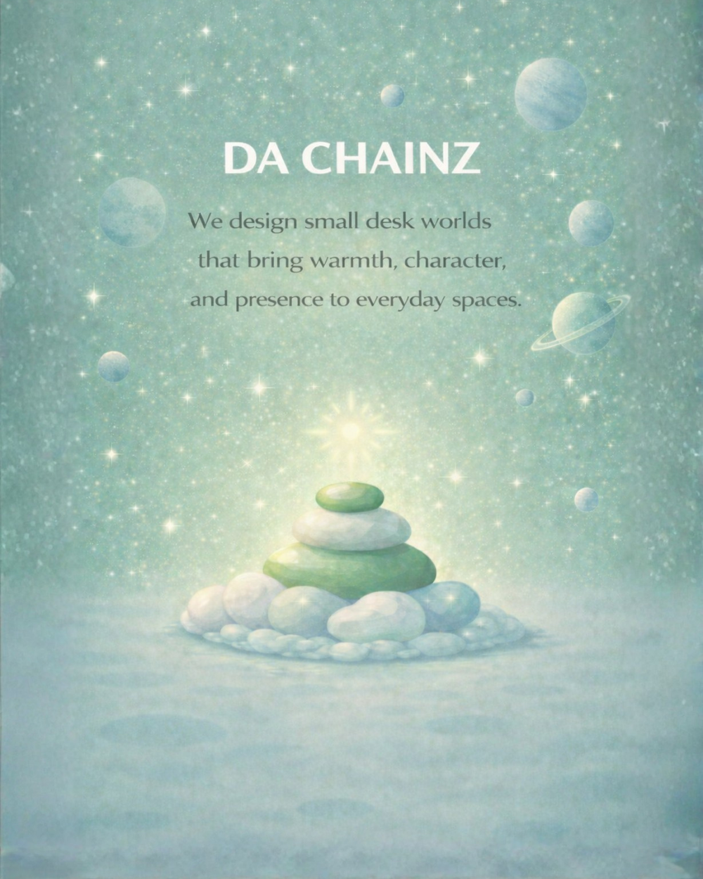 We don’t believe in packaging that ends up in a bin. Every Da Chainz object is a two-part system: a heartwarming desk companion and its own decorative "Book-Style" housing.